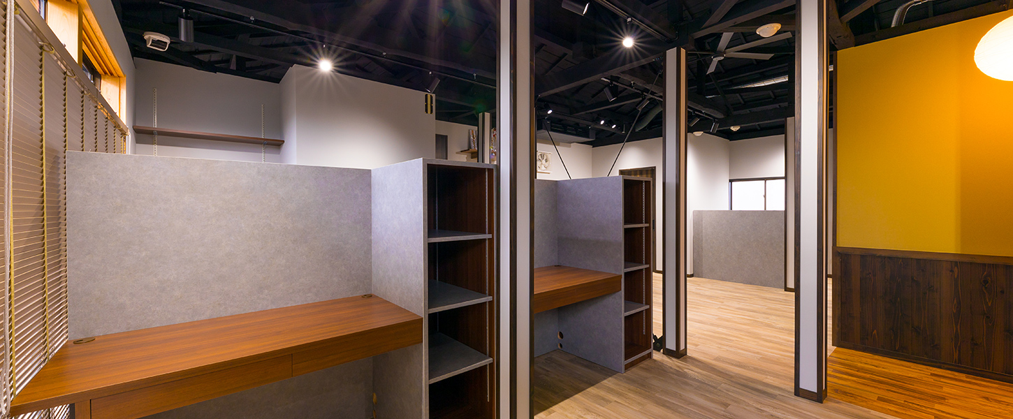 築35年の2階建て住居を会社の事務所にしたいとのご依頼をいただき、内外装工事全般、什器製作、トイレなどの水回り一式、事務スペースや机に至るまでの什器を含む一切をお任せいただくことになりました。